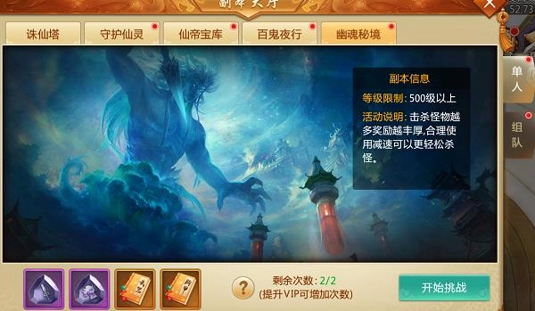 1、幽魂秘境为单人防守副本,只可单人进入。