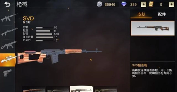 SVD狙击枪属于连发式狙击枪。和单发狙击枪相比,它的伤害相对较低,但具备连续射击的能力,弹匣容量也更大;若与步枪对比,则伤害更高,不过在稳定性和射速方面稍逊于步枪。这款枪很适合单发狙击枪命中率欠佳的使用者,毕竟它支持连发,且连续射击时的威力要高于步枪。