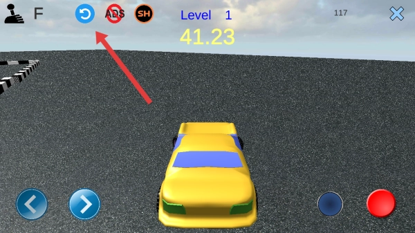 要是在赛道上驾驶时出现失误,你可以点击页面上方那个蓝色的循环箭头图标,这样就能重置当前的Level1关卡,重新开启挑战啦。