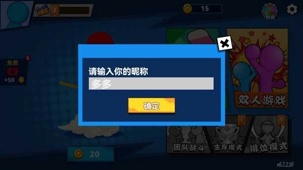 打开决斗火柴人2最新版,新玩家需要先取一个昵称;