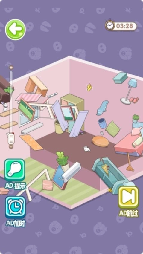《收拾退房吧》是一款趣味十足的休闲收纳游戏。你的核心任务是协助不同角色整理房间——快速识别各类必要物品,将它们归置到恰当位置,就能打造出完美的房间效果,整体场景也会随之呈现多样变化。玩家需要解锁关键的关联信息,才能收获更理想的整理成果。若遇到困难,还能通过观看视频获取提示,借助这些信息找到最佳的物品关联方式,解锁必要条件,从而收获更多惊喜。房屋里会出现形形色色的杂物,玩家可以探索它们的具体用途,规划最优的整理方案。如果你也对这款游戏感兴趣,不妨来试玩一番!