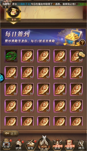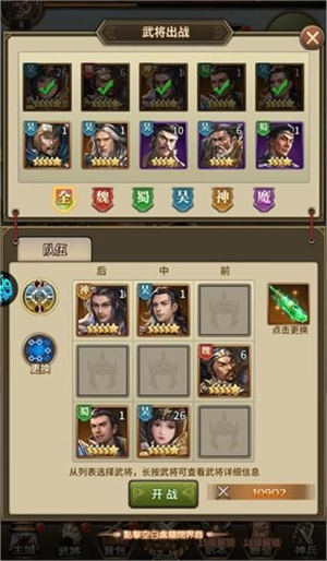 武将系统是游戏核心力量的基石。每个武将都具备独特的属性、天赋与战法,他们既是战场上克敌制胜的利刃,也是治国安邦的关键支柱。你可以通过系统化的培养、装备强化和进阶升星,持续提升武将的实力。而更为重要的是,要依据战局的实际需求,巧妙组合不同武将的技能与特性,构建出相辅相成的战斗体系,这常常是决定战场胜负的重要策略。