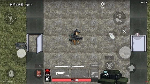 进入游戏后会有新手教程引导,左侧按钮用于操控角色移动,右侧按钮则负责控制角色开火。