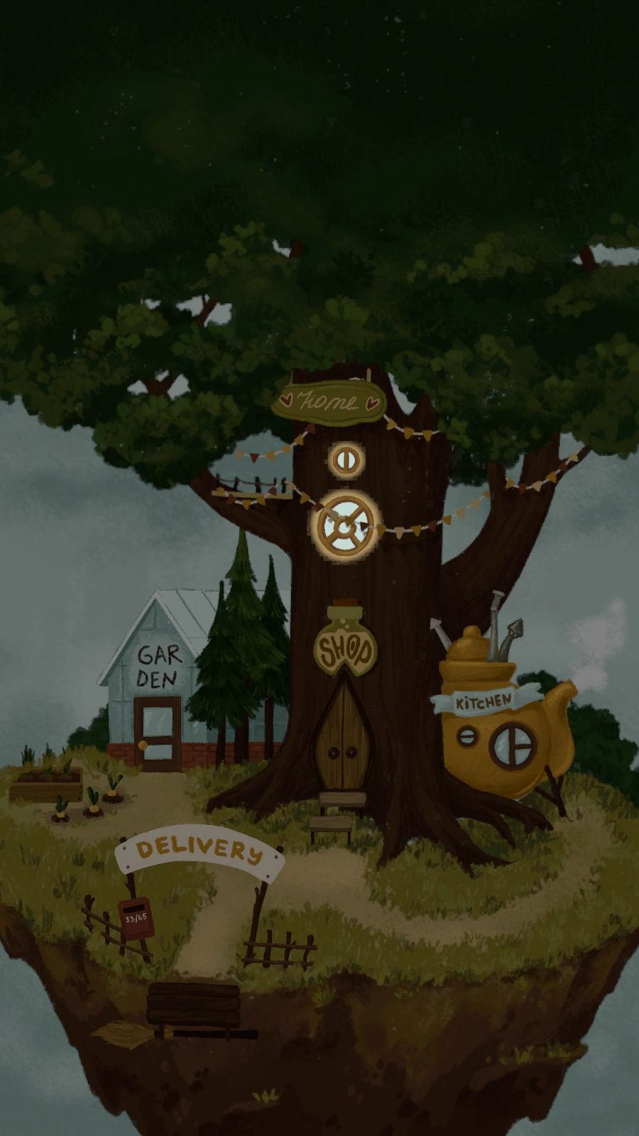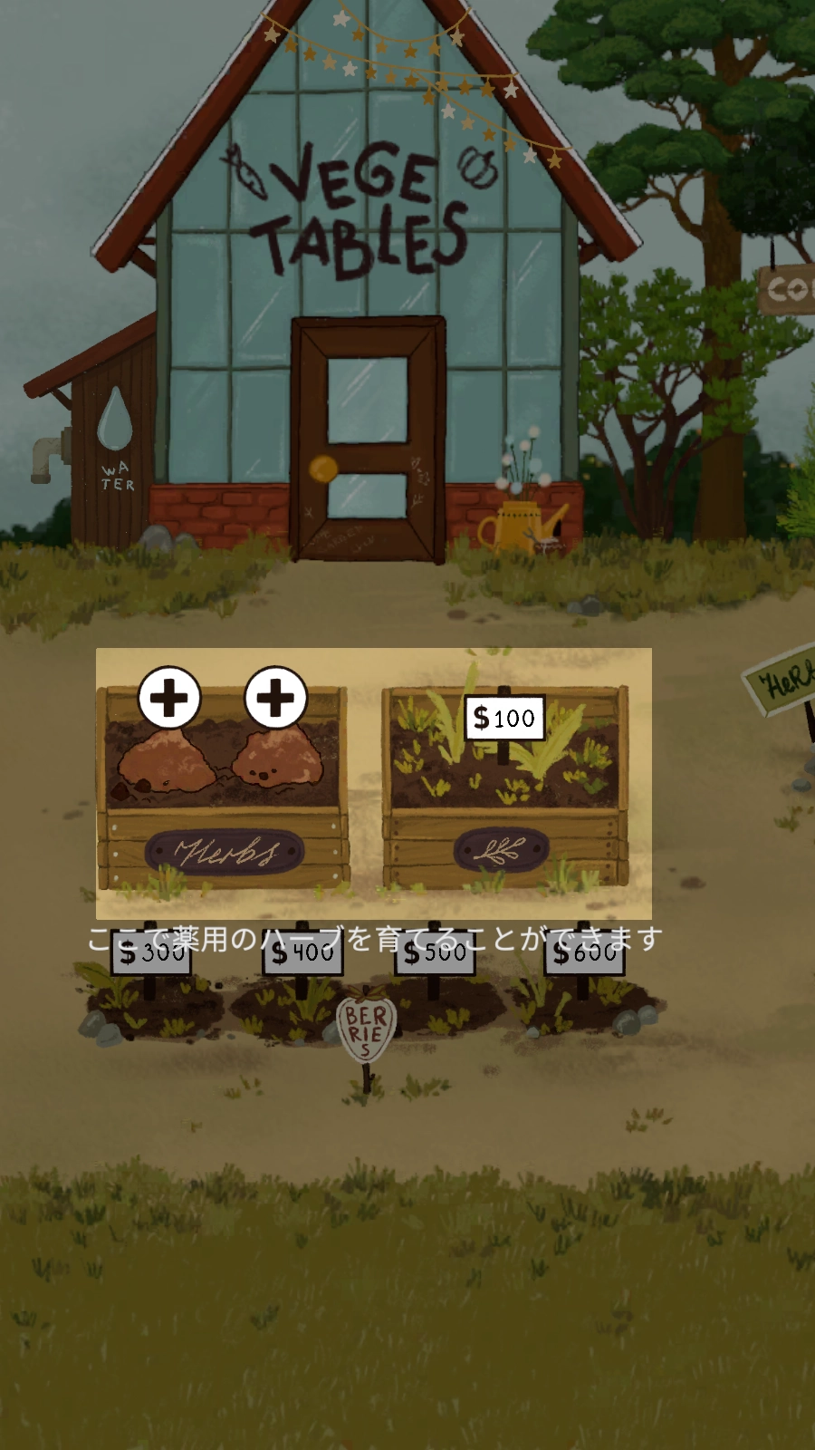 2、从树屋出来后,点击GARDEN进入花园种植作物材料,然后点击加号按钮。
