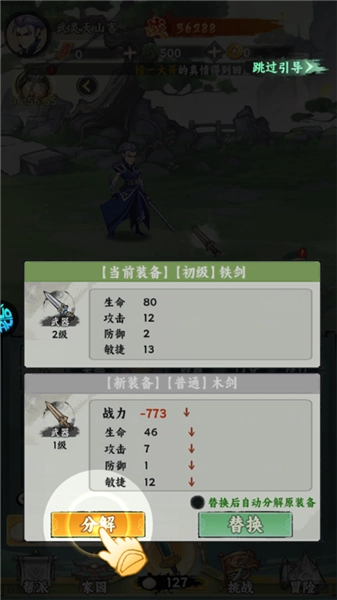 3、要是碰到用不上的装备,把它分解掉就能得到铜钱和经验。