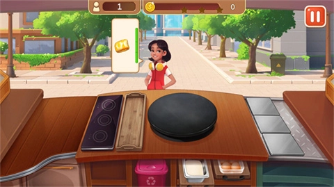 教程结束后,就会正式进入1-1关卡,只要制作出两个煎饼就能通关。