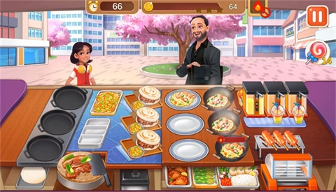 炒饭要记得持续续上,肉夹馍备三个就够了,所有餐品都搭配小菜,不用额外操心。饮料和烤肠顺手多点点就能搞定,重点只需要留意炒饭就行。这是正常关卡,上菜有固定顺序,多打几遍记住布局就没问题了。