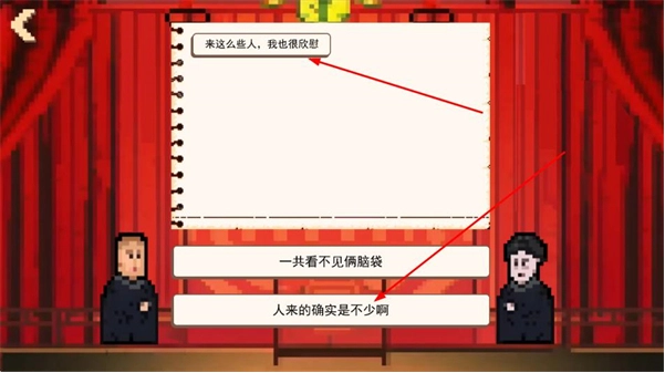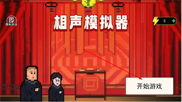 1、启动游戏后点击开始按钮,挑选逗哏或者捧哏角色,随后进入游戏场景。