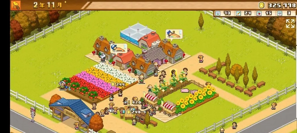 在四季更迭的过程里,你得借助栽种不同种类的花卉与蔬果来美化田地,构建惬意的园区以吸引顾客。