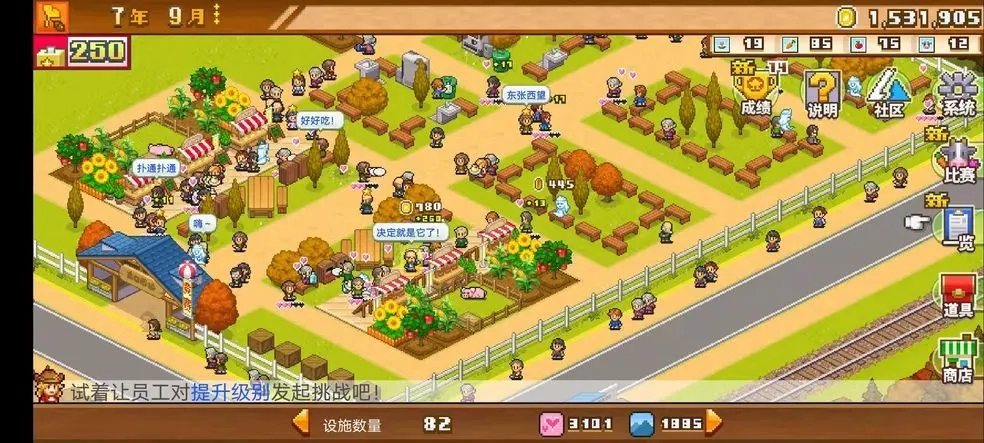 可以这样一路参与魅力风景竞赛,接着进行扩地,同时种植些普通的水果花卉之类的作物,参加各类大赛,升级商店,把苹果解锁出来。这样前期的挣钱格子就搭建完成了,前期先布局两个挣钱格子,后期可以扩展到四个,中间要记得招募员工。