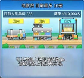签约的影院线数量越多、合作影院的档次越高,影片的票房收入往往也会更可观。建议优先推进国内影院的签约合作与升级改造;其次考虑自主投资建设影院;最后再布局海外影院——尽管拓展海外市场每次发片都需额外支付高额手续费,但为了提升整体票房收益这笔开支难以避免,只是在投入时务必保持谨慎。无论在任何阶段,都必须预留充足资金用于下一部电影的制作,毕竟打造优质影片才是这个游戏的核心目标。