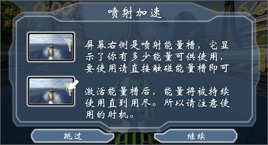 打开游戏后,先选择你想要挑战的模式,再依次选定难度、赛道和赛艇,就能进入游戏了。