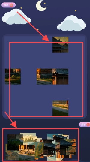 游戏智能辅助道具系统,能够巧妙提示碎片间的位置关联,有效降低拼图操作的难度。