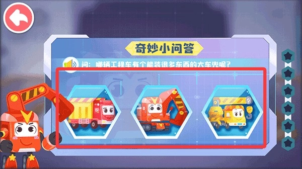 奇妙的工程车手机版借助拟真建造与工程模拟的方式,为孩子打造了一个生动有趣的学习平台。它不仅能帮助孩子认识各类工程车和建设流程,还能在不知不觉中培养他们解决问题的能力与安全意识。游戏画面色彩鲜艳,配音引导自然亲切,融合了多种任务模块,让孩子可以在不同场景里尽情探索,既具娱乐性又有教育性,有着很高的儿童启蒙价值。