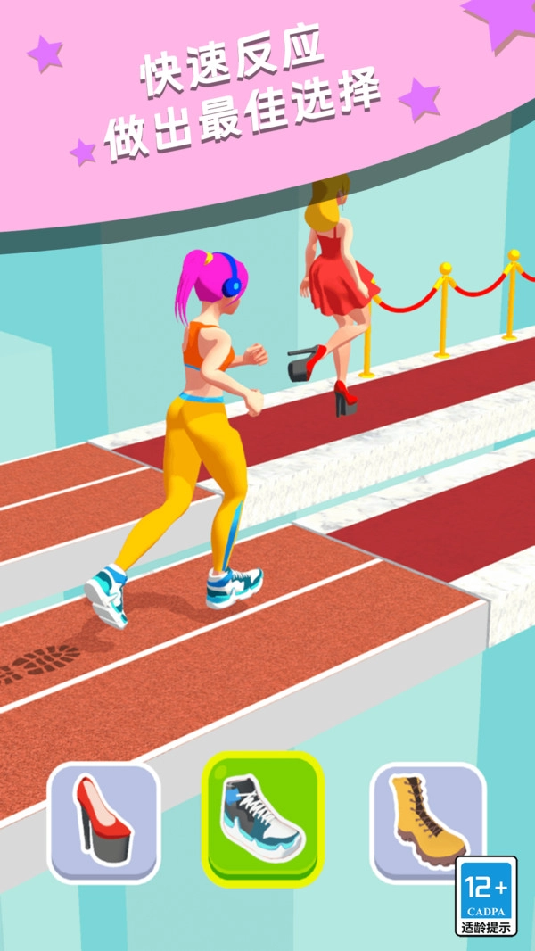 把传统竞速玩法和换装元素巧妙融合,玩家在高速奔跑时,得依据地形迅速切换鞋子。