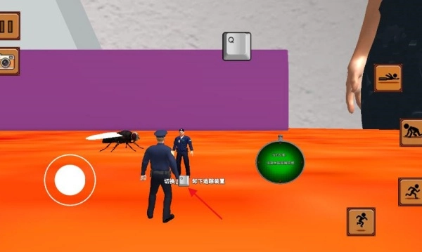 1、点击右下角跳跃按键控制警探跳跃,精准落在巨型物品或人类身上,开启关键对话与线索获取。