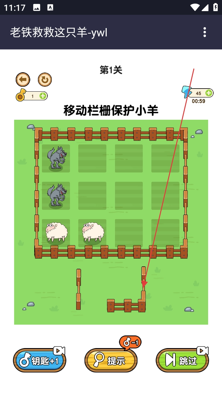 我们以“移动栏栅保护小羊”这一玩法为例,当玩家进入关卡后,首先要仔细观察小羊和狼在场景中的位置分布情况,接着通过滑动、拖拽等操作来移动场景里的栏栅,从而把小羊和狼分隔开来,以此阻止狼靠近小羊。