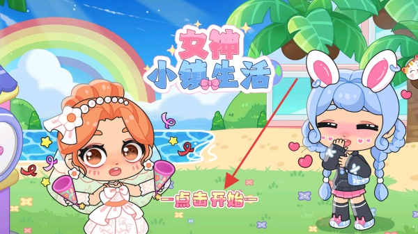 游戏的开始界面中,点击开始按钮,即可进入女神小镇生活的游戏世界。