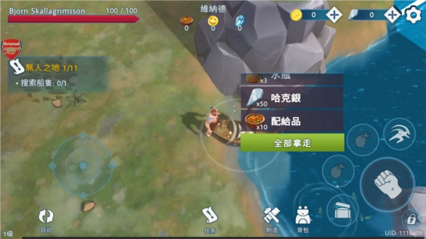 2、根据主线任务,来到船旁边,可以把探索到的食物都带走。