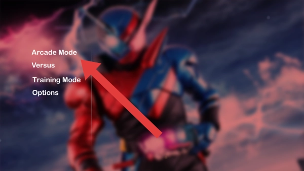 模式选项涵盖ArcadeMode街机模式、Versus对战模式、TrainingMode训练模式以及Options,背景呈现的是假面骑士Build的形象。