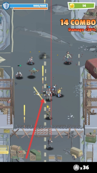 在战斗过程中控制角色,借助武器对行进路线上的僵尸发起攻击,完成14-COMBO的连击操作,以此来提高伤害输出。