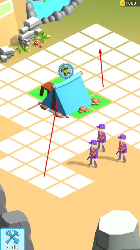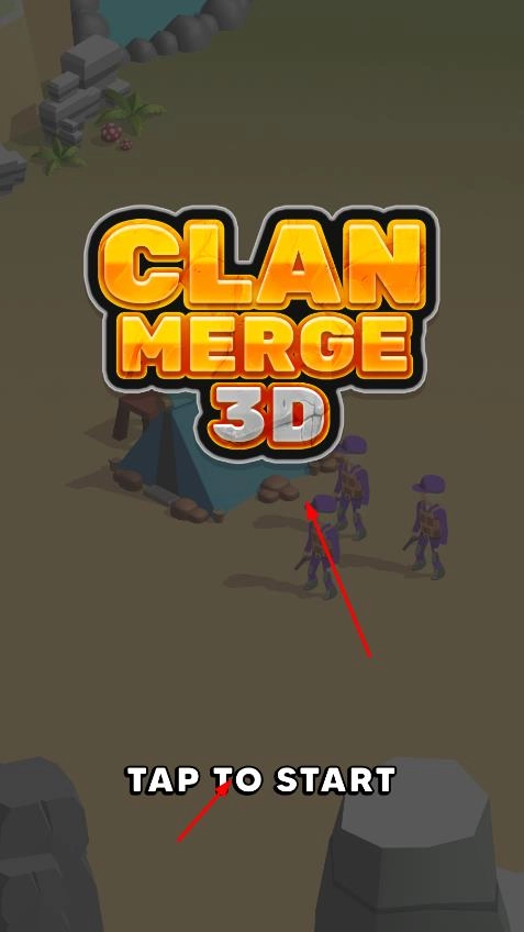 点击“TAP TO START”即可开始游戏,你需要操控紫色士兵,在营地进行建造,以此积累金币。