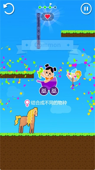 3、游戏里有多种不同类型的角色,配对后有概率随机组合出全新的物种或形态,而且每一次配对的结果都不一样,所以过程充满惊喜;顺利达成关卡目标后,会依据表现发放奖励,还有机会解锁不同类型的宝箱,宝箱里一般包含新角色、新造型或其他解锁内容,能让后续关卡更具变化。