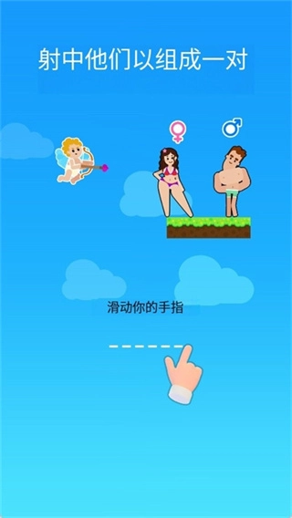 2、进入关卡后,通过滑动手指调整射击方向,瞄准场景里的角色射出爱心箭。一旦成功射中,这些角色便会配对组成一队,开启互动环节。