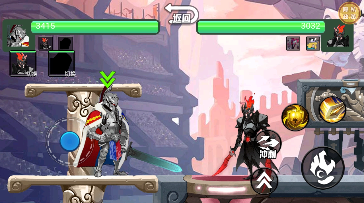 挑选喜欢的角色加入对战,借助按键组合施展出连招,运用技能压制住对手并消耗他们的生命值。