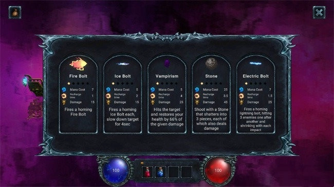 游戏里有不少法杖、药水这类带有RPG属性的物品,还提供了多种多样的咒语与技能供玩家挑选。