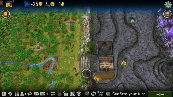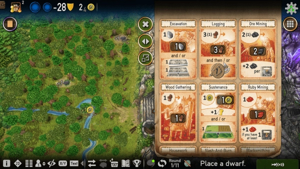 洞穴农夫最新版本是一款经营卡牌类模拟游戏,由乌韦·罗森伯格(Uwe Rosenberg)打造的洞穴世界,让你化身矮人部落的首领,栖息在一处狭小的洞穴之中。在游戏进程里,你需要在洞穴前方开垦森林,同时向深山内部探索。通过在洞穴里规划布置各类房间,能够为部落发展腾出更多空间,还能借助手中的资源制作出全新的商品。