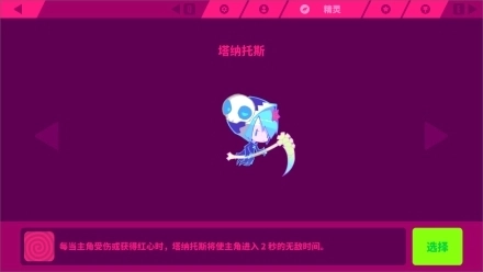 每当主角受伤或是获得红心之际,塔纳托斯都会让主角进入持续2秒的无敌状态。