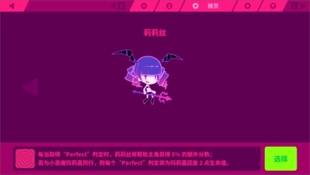 每当主角获得“Perfect”判定时,莉莉丝会助力主角额外获取5%的分数;要是和小恶魔玛莉嘉一同行动,那么每个“Perfect”判定都能为玛莉嘉恢复2点生命值。