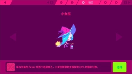 每当主角处于 Fever 状态并成功击退敌人时,小女巫就会助力主角获取20%的额外分数。