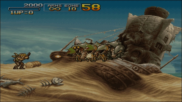 Ostrich Slug:配备火神炮的鸵鸟,和以往的骆驼相似但跳跃能力更出色,不过在左右转身时会出现一段无法攻击的硬直,这个时候要是受到攻击就会死亡。