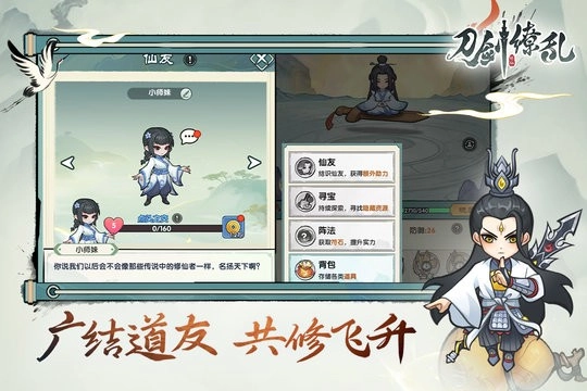 无论是日常挂机炼剑、探秘奇境寻宝,还是和好友切磋剑术,玩法都简单易上手却丝毫不减爽快感。