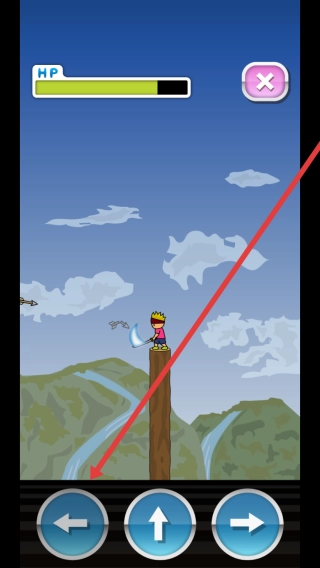 进入关卡后,你需要根据提示,点击下方的左右箭头和向上按钮来操控角色,让他在木桩上挥刀,以此来应对即将到来的危险。