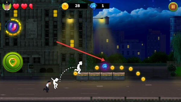 在跑酷场景中,长按屏幕即可控制角色跳跃,过程中要注意避开各种障碍;同时记得优先收集金币和钻石等道具,以此来推进关卡的进度。
