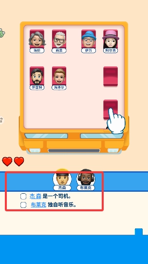 进入关卡后,按照下方给出的要求,把人物拖拽到座位上,就能顺利通关了。