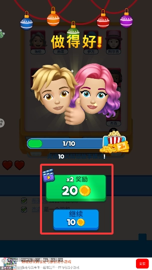 过关后,会获得大量金币奖励,点击继续即可领取。