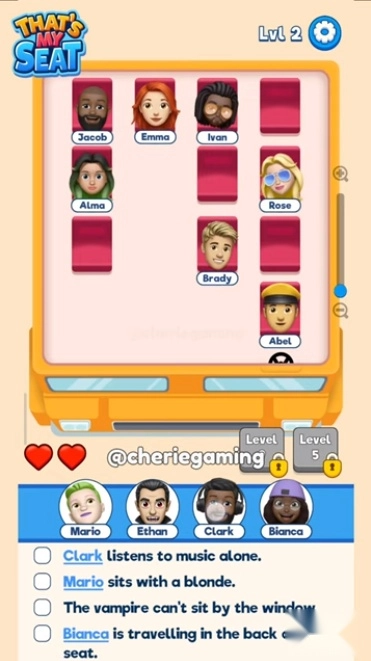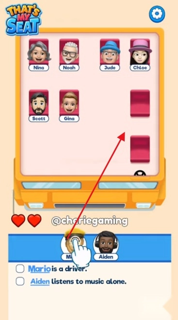 按照游戏里的指引,把每个角色准确拖到对应的座位区域。