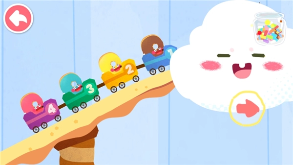 数字小火车准备就绪,即将启程!快点击那个红色箭头,咱们一起朝着甜甜圈的小料区域出发吧!