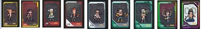 游戏内SSR英雄人物当前总计43个,进化体系包含9个阶段,依次为:裂变(金色)、裂变+(金红配色)、热核(红色)、热核+(红白配色)、聚变(白色)、聚变+(白绿配色)、氦闪(绿色)、氦闪+(彩绿配色)、热寂(彩黑配色)。每次进化需消耗一张同款人物卡片(等同于60个人物碎片),也就是说,只要拥有九张相同的英雄卡片,就能将该英雄进化至最高等级。