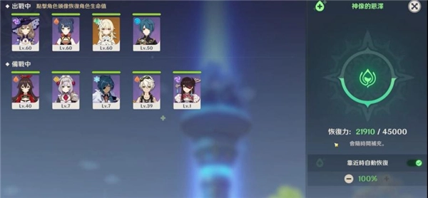 要是打完副本后全队血量都偏低,不妨飞到神像那里集体回血,这样就不用浪费食物了。神像的回血能量虽非无限,但只要通过供奉升级,其存量就会大幅增加,基本上已经足够使用了。