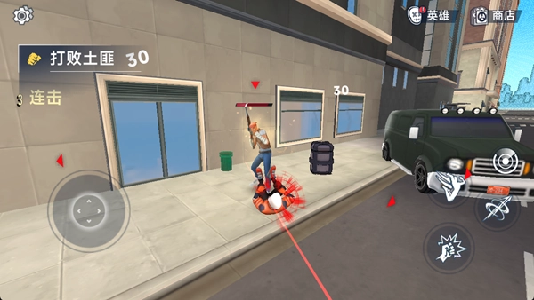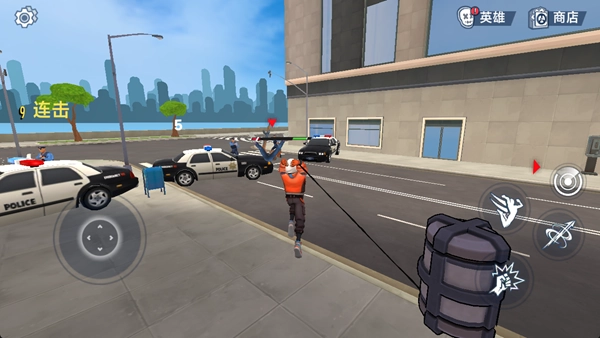 操控英雄在城市场景中移动,借助连招战胜土匪之类的敌人,留意规避攻击,积攒连击数,合理运用道具。