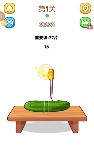 游戏汇集了多种解压小游戏,比如切黄瓜竞赛,要在系统设定的时间内完成指定的切片数量,需要持续点击手机屏幕。