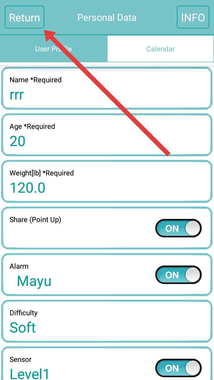 在个人资料页面填写姓名、年龄等信息后,点击左上角的返回按钮,即可退出资料编辑界面,回到上级菜单。