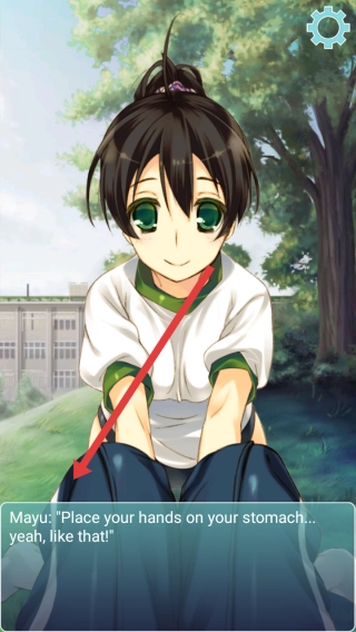 按照角色Mayu的指引,依照将手放置于腹部的提示完成动作互动,点击即可解锁后续的健身指导环节。