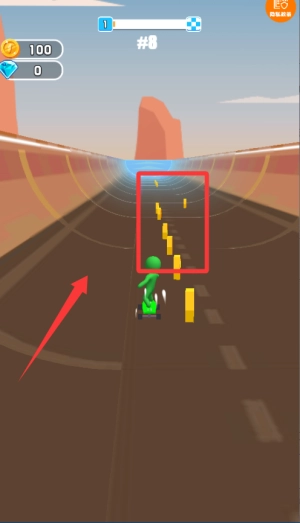 进入游戏后,首先要熟悉滑行的操作方式——通过左右滑动来控制角色的移动方向,同时要保持身体平衡,确保能在轨道上顺利前进;另外,还要留意观察前方路线的变化情况。