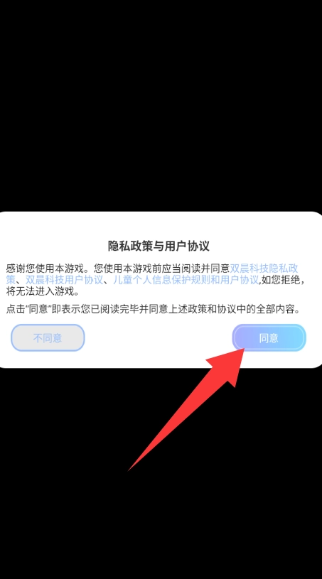 点击隐私政策与用户协议里的同意并进入。
